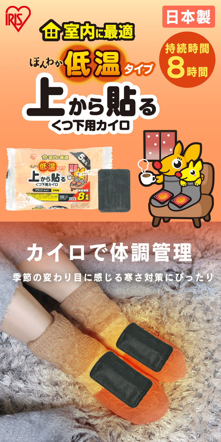 [検索用:カイロ 低温 使い捨て 貼る 防寒 あったか 冬 防寒対策 冷え 防災 備蓄 靴下 室内 4582228256088]