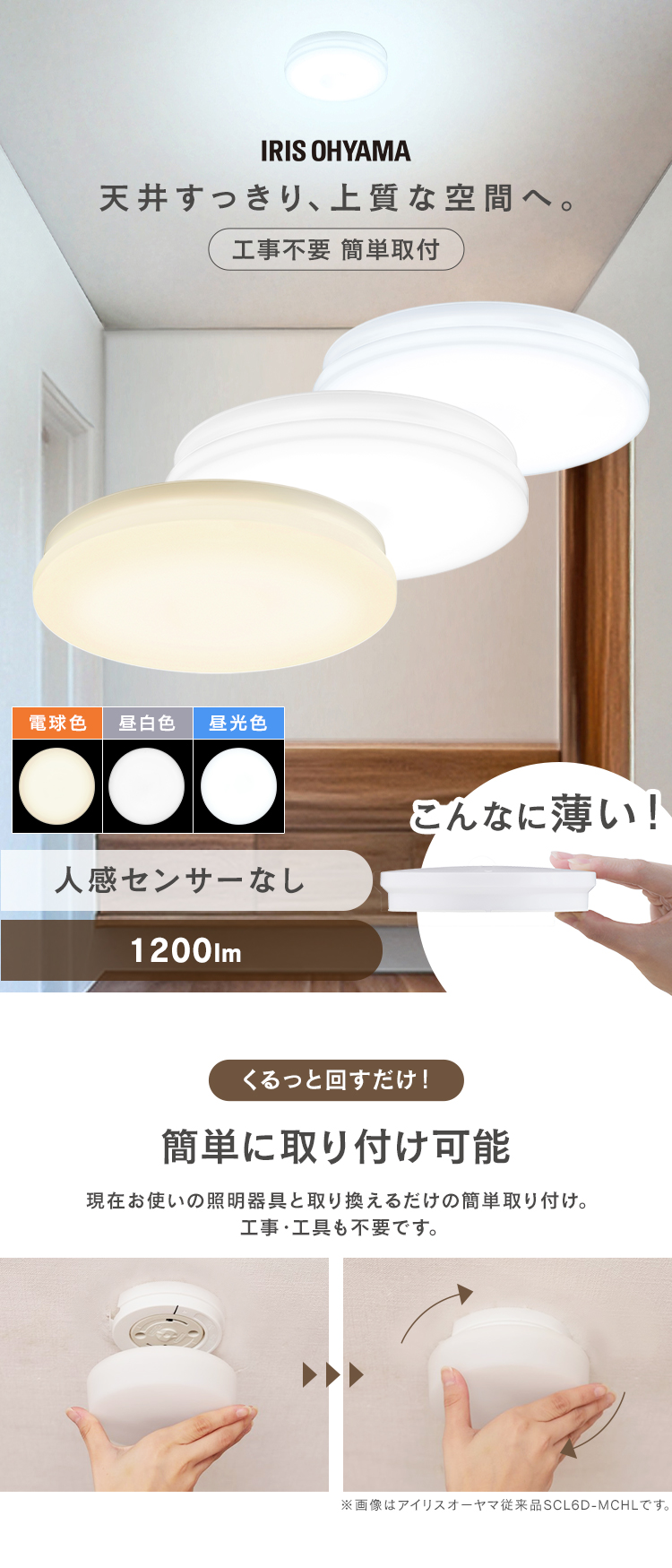 薄形LED小型シーリングライト[1200lm/工事不要/簡単取付]