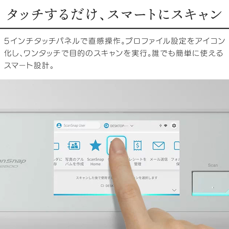 時・場所・デバイス、自由自在!直観操作のタッチパネルを搭載したフラッグシップスキャナー