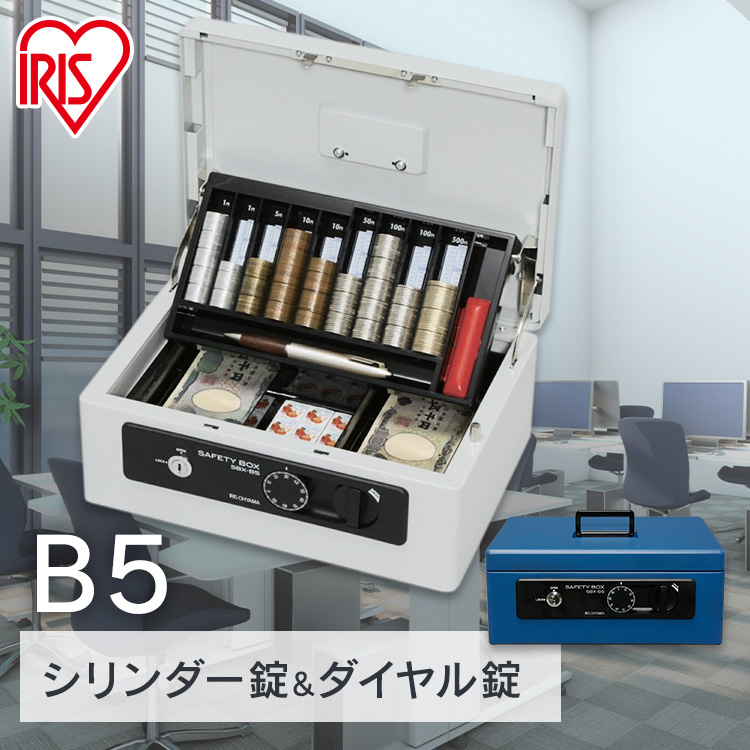 金庫 家庭用 小型 手提げ ミニ 安い 業務用 手提げ金庫 貯金箱 コイントレー付 オフィス 事務用品 ダイヤル錠 シリンダー錠 防犯対策 アイリスオーヤマ SBX-B5