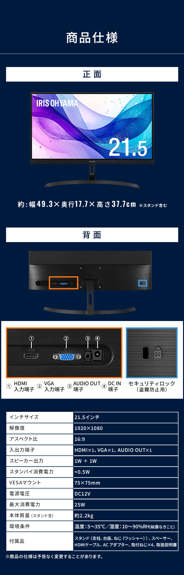 [検索用:モニター 21.5インチ フルhd 高画質 100Hz VA ノングレア 非光沢 スピーカー内蔵 3年保証 角度調節 PCモニター フルハイビジョン 動画 ディスプレイ 液晶モニター パソコンモニター デュアルモニター 21インチ 4967576799508]■2025年9月5日リニューアルしました。