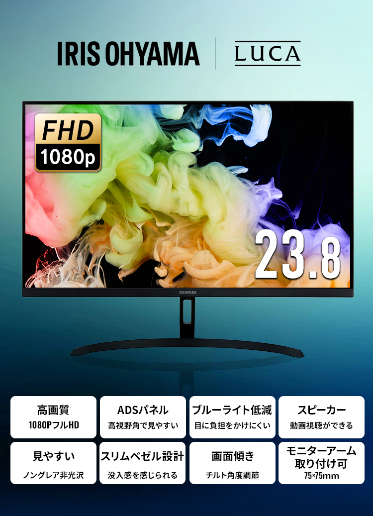 [検索用:モニター 23インチ フルhd 高画質 100Hz VA ノングレア 非光沢 スピーカー内蔵 3年保証 スリムベゼル 角度調節 PCモニター フルハイビジョン 動画 ディスプレイ 液晶モニター パソコンモニター デュアルモニター 4967576799515]