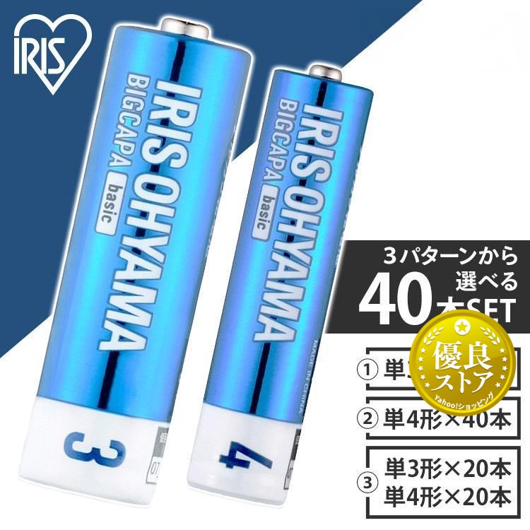 乾電池 単3 単三 単4 単四 電池 送料無料 BIGCAPA basic 単3×40本or単4×40本or単3×20本+単4×20本【代金引換不可・日時指定不可】 【メール便】
