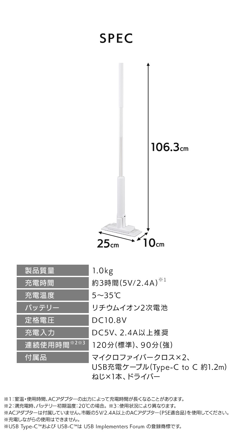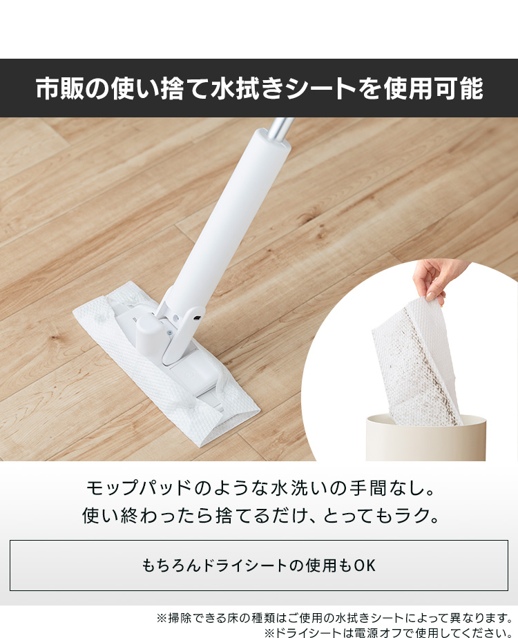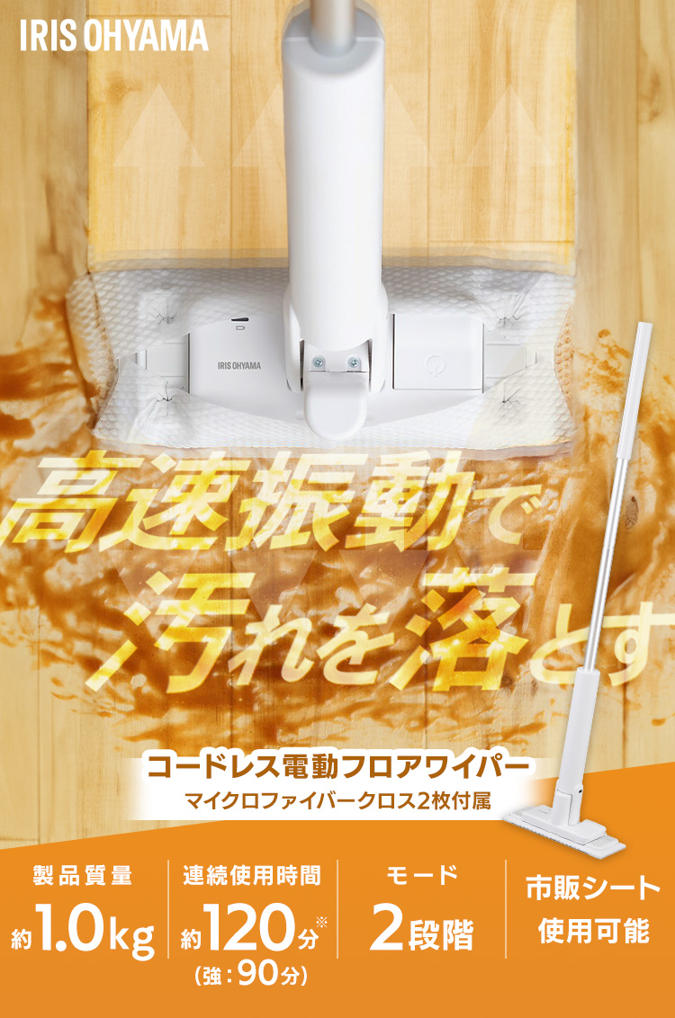[検索用:電動モップ コードレス フローリングワイパー モップ 水拭き 床掃除 雑巾 ワイパー 床拭き 電動フロアワイパー 掃除 軽量 充電式 4967576739726]