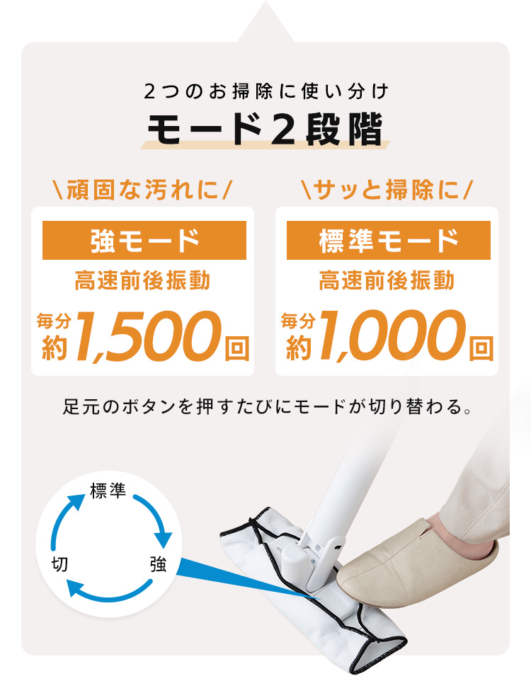 ・標準(高速前後振動:毎分約1000回):サッと掃除に!