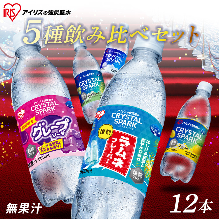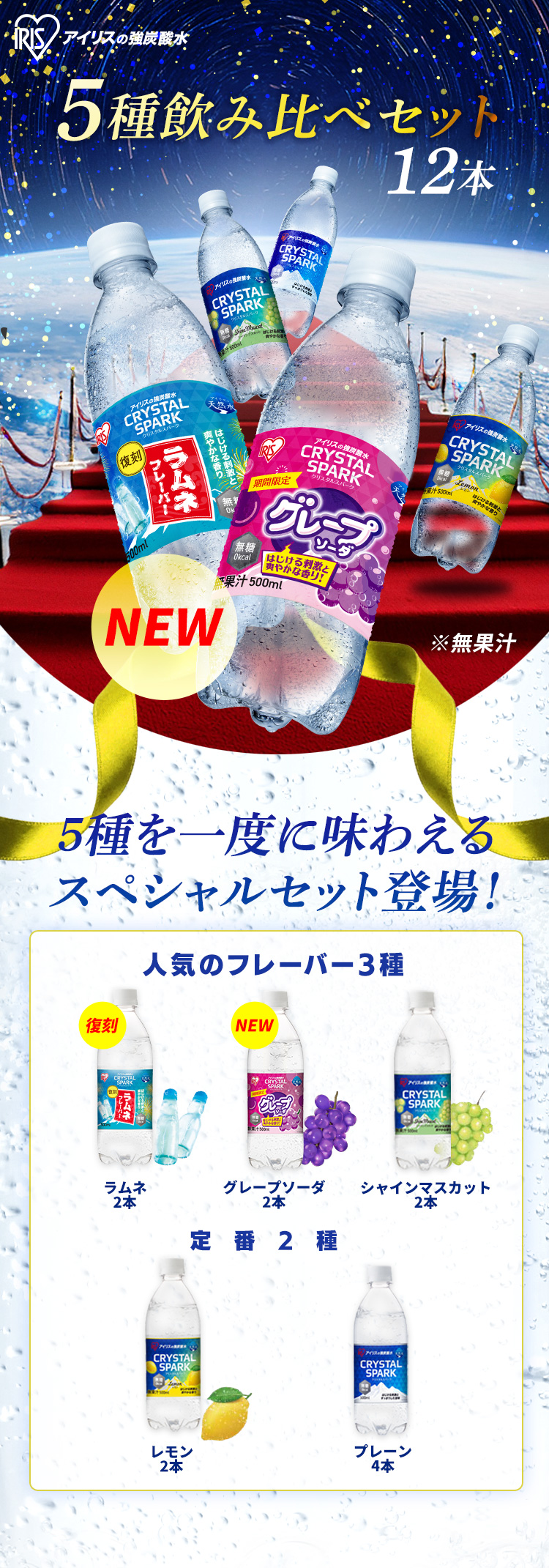 500ml×12本(プレーン×4本、レモン、シャインマスカット、ラムネ、グレープソーダ×各2本)