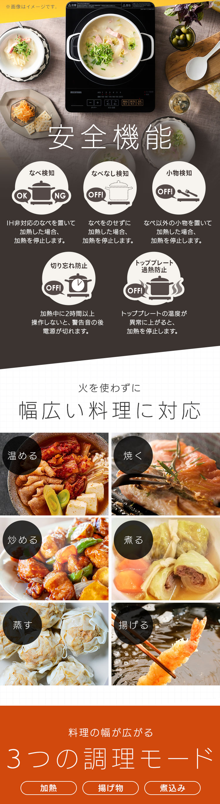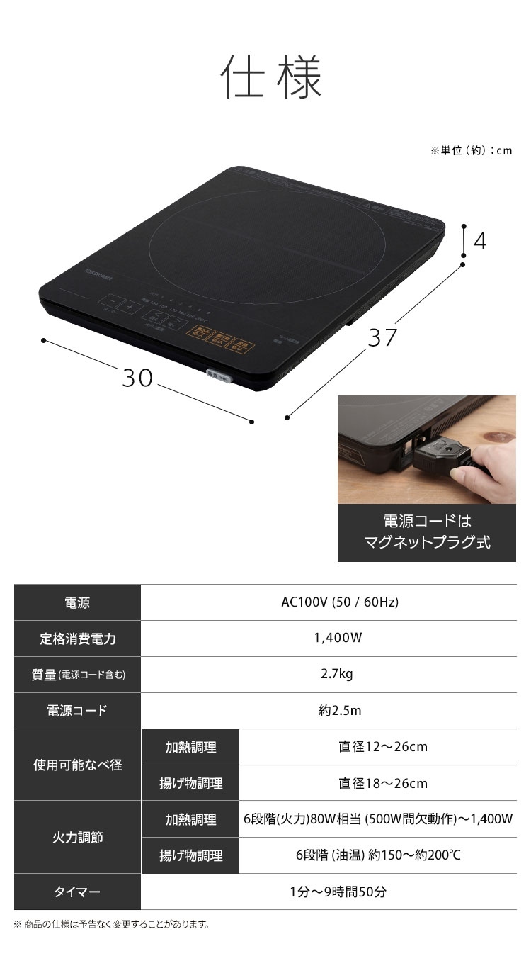 [検索用:IHコンロ IHクッキングヒーター IH調理 調理 クッキング 電気コンロ 家電 台所 食卓 一人暮らし 安全 料理 加熱 食事 火力 鍋 ブラック 電気 テーブル 卓上 4967576373326]