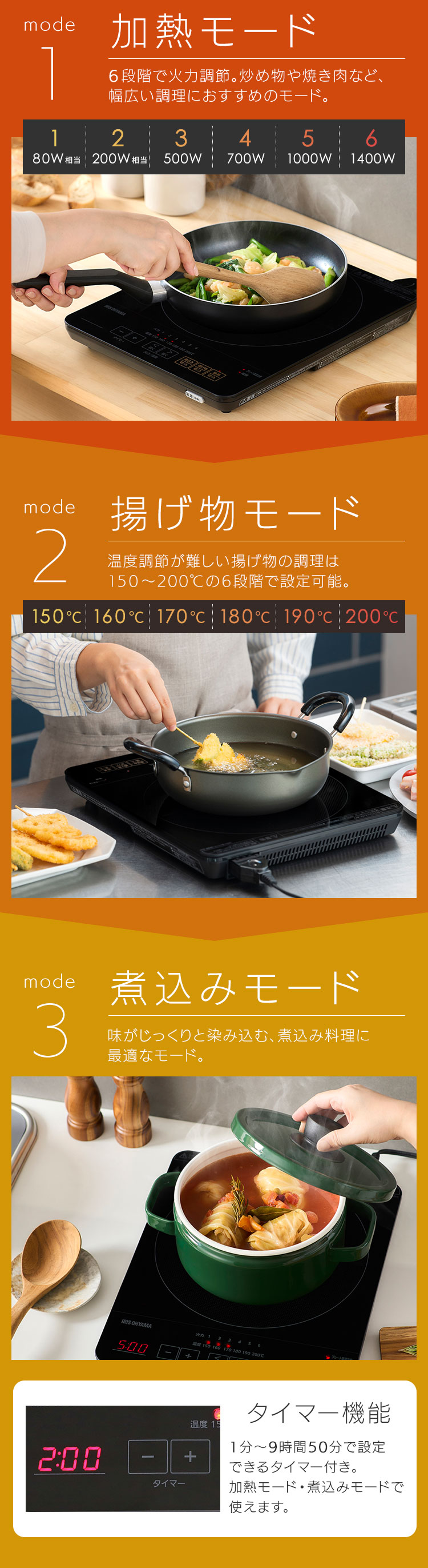 揚げ物調理:6段階(油温)約150〜約200℃