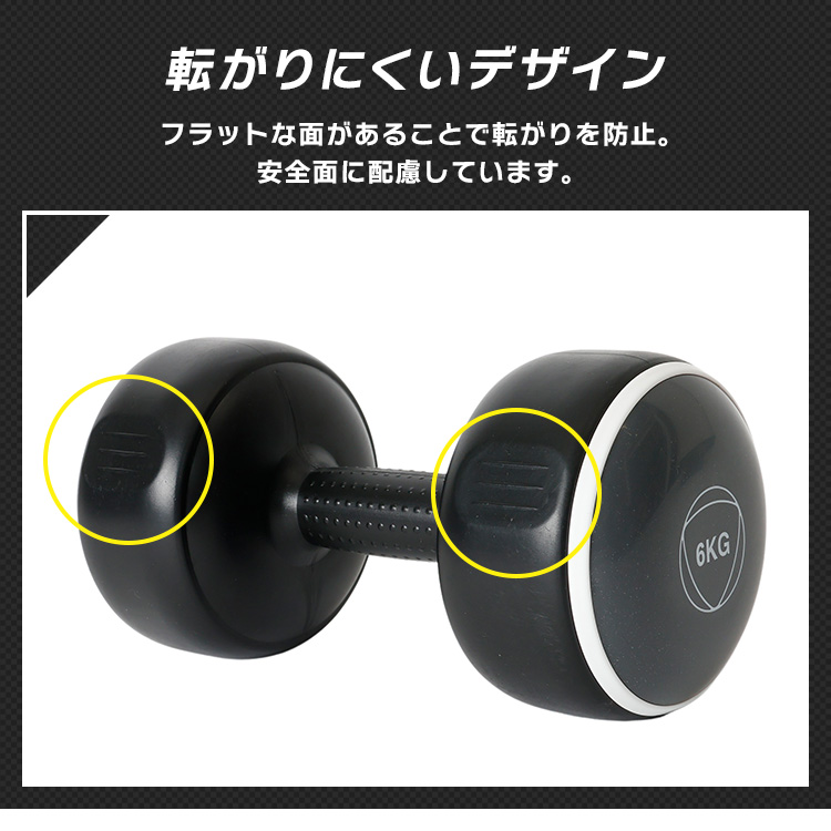 トレーニングに合わせて1kg〜6kgの重量を選べます。