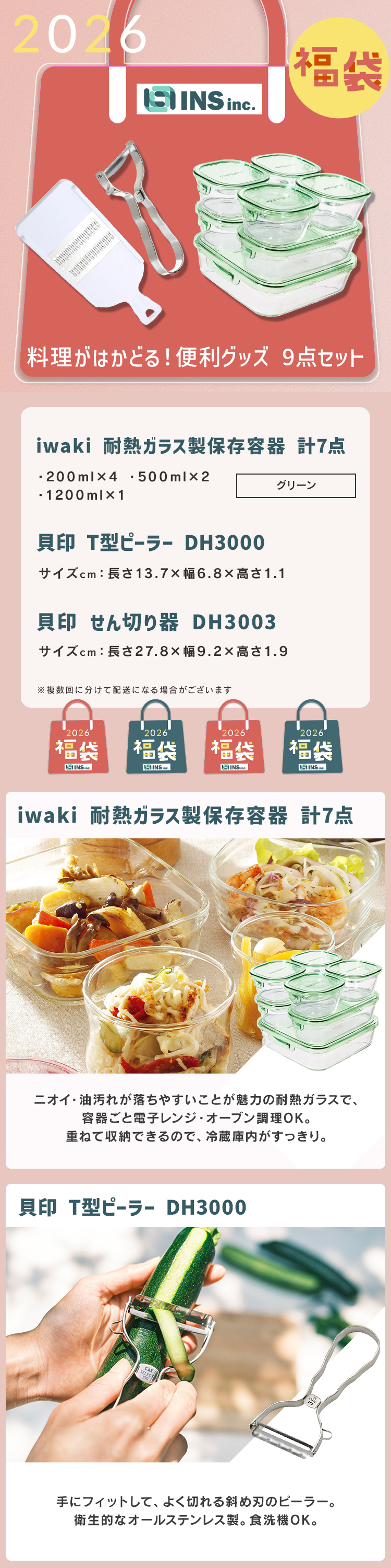 [検索用:福袋 ラッキーバッグ 調理器具 iwaki イワキ 貝印 保存容器 ピーラー セレクト100 せん切り器 ]