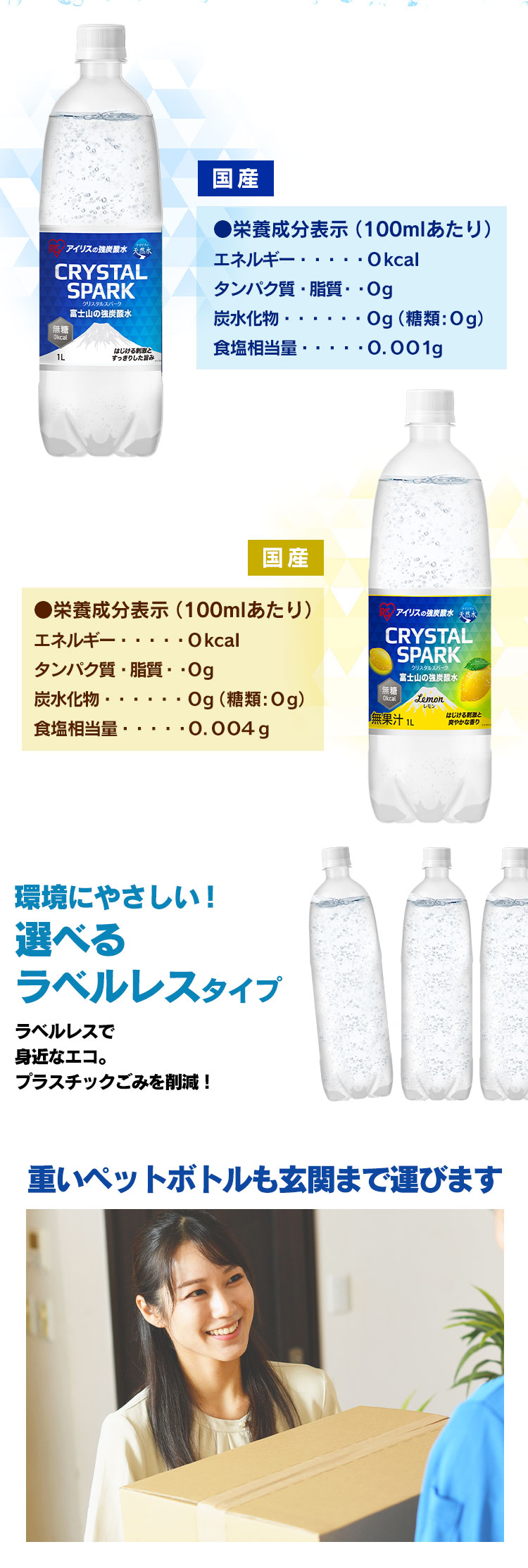 自然の恵みたっぷりの天然水を使った飲みやすい強炭酸水です。