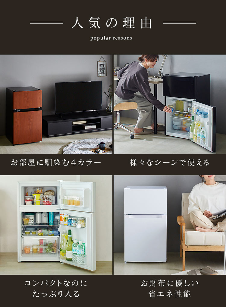 [検索用:ノンフロン冷凍冷蔵庫 87L 冷蔵庫 2ドア 87L 小型 コンパクト パーソナル 右開き シンプル 一人暮らし 1人暮らし ひとり暮らし ]