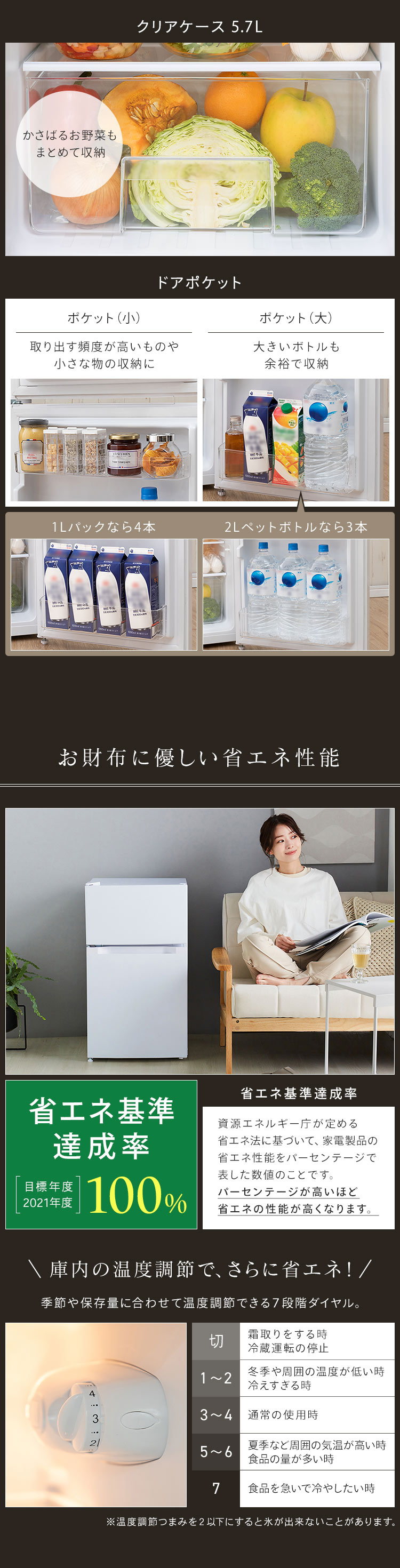(※1)定格内容量は、日本工業規格(JIS C 9801:2015)にもとづき、食品収納スペースと冷気循環スペースを含んでいます。
