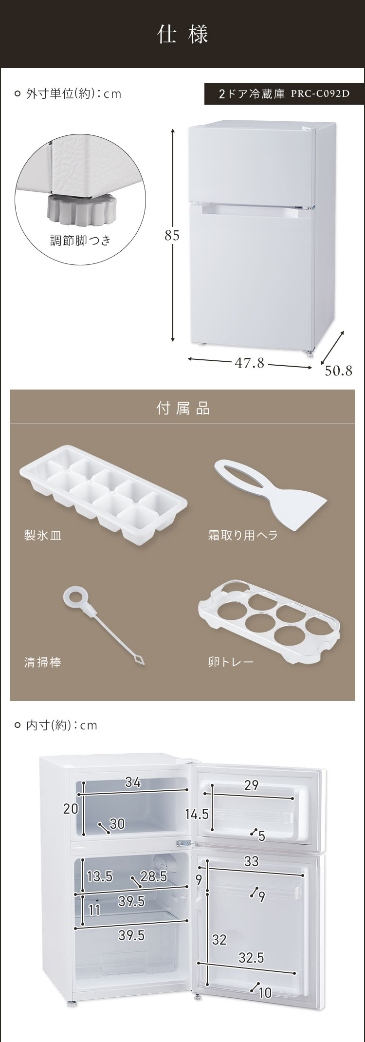 製氷皿、霜取り用ヘラ、卵トレー、清掃棒
