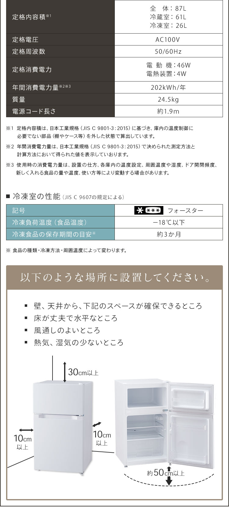 87L(冷蔵室61L/冷凍室26L)(※1)