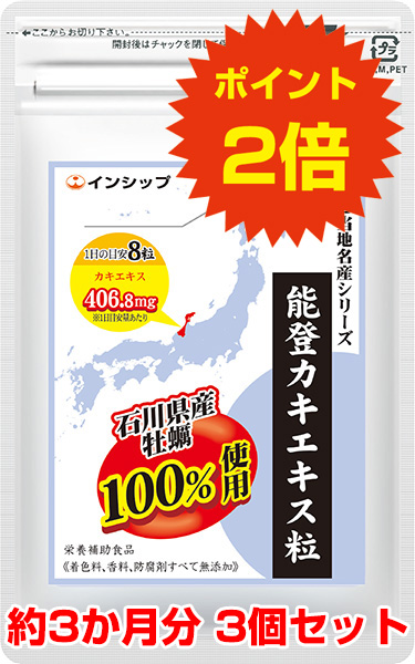 能登カキエキス粒 3個セット / 3ヶ月分 / 送料無料 / ポイント2倍