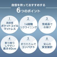 寝心地の良いポケットコイルマットレスと14段階のリクライニング機能が付いた折りたたみベッドです。
