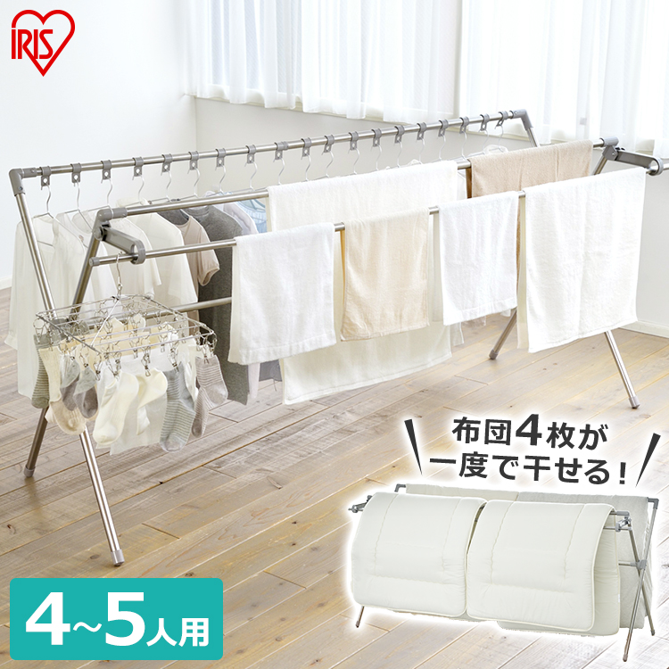 衣類もふとんもまとめて干せる、大容量。