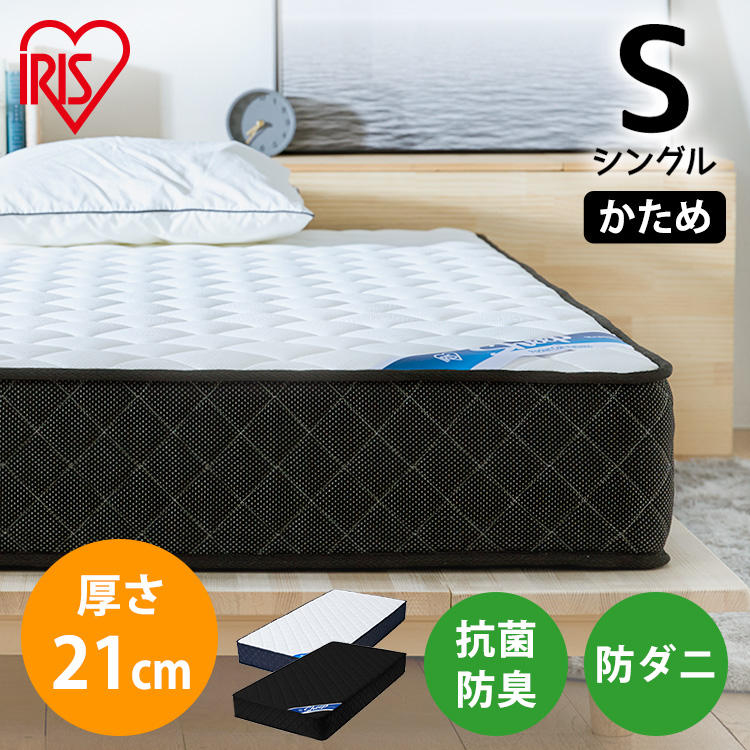 マットレス シングル ポケットコイル 硬め 腰痛 コイルマットレス ベッドマット 極厚 アイリスオーヤマ PMTS21H-S