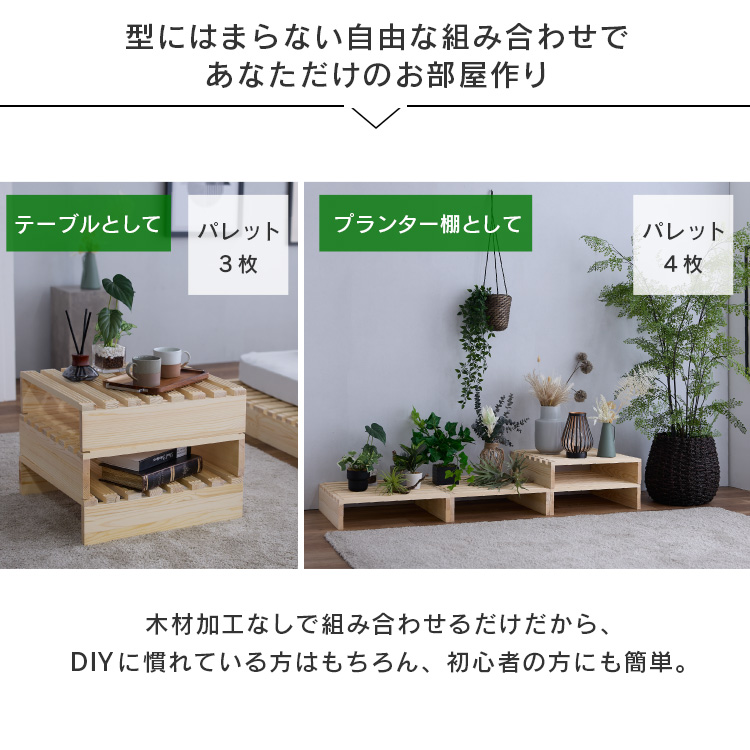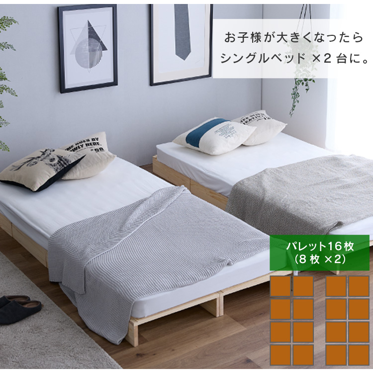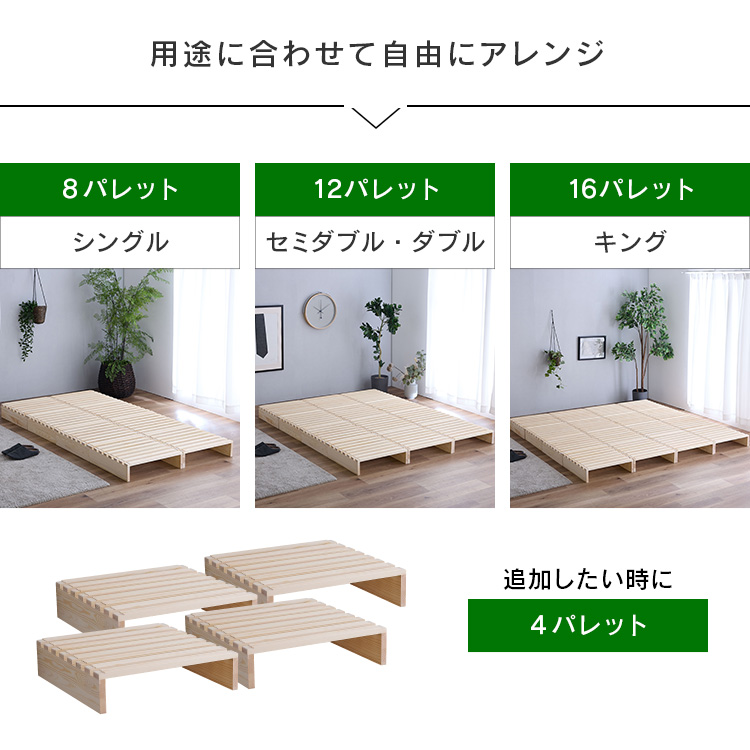 天然無垢パイン材を使用した組み合わせ自由のパレットベッドです。