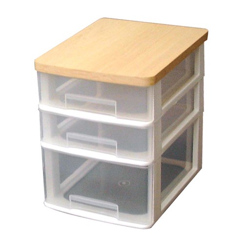 [検索用: 幅26.2cm×3段 中身が見えるウッドトップ収納チェスト ET-W421]