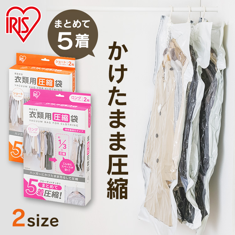 吊るせる衣類用圧縮袋[掃除吸引タイプ]。