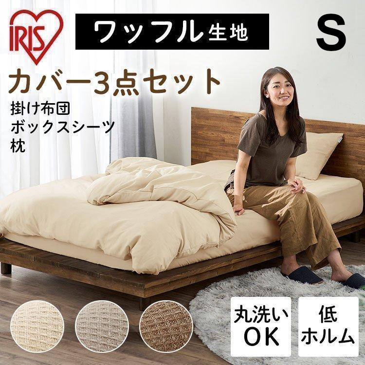 布団カバー シングル 3点セット おしゃれ 掛け布団カバー ボックスシーツ 枕カバー セット ワッフル生地 無地 吸水 吸湿 アイリスオーヤマ