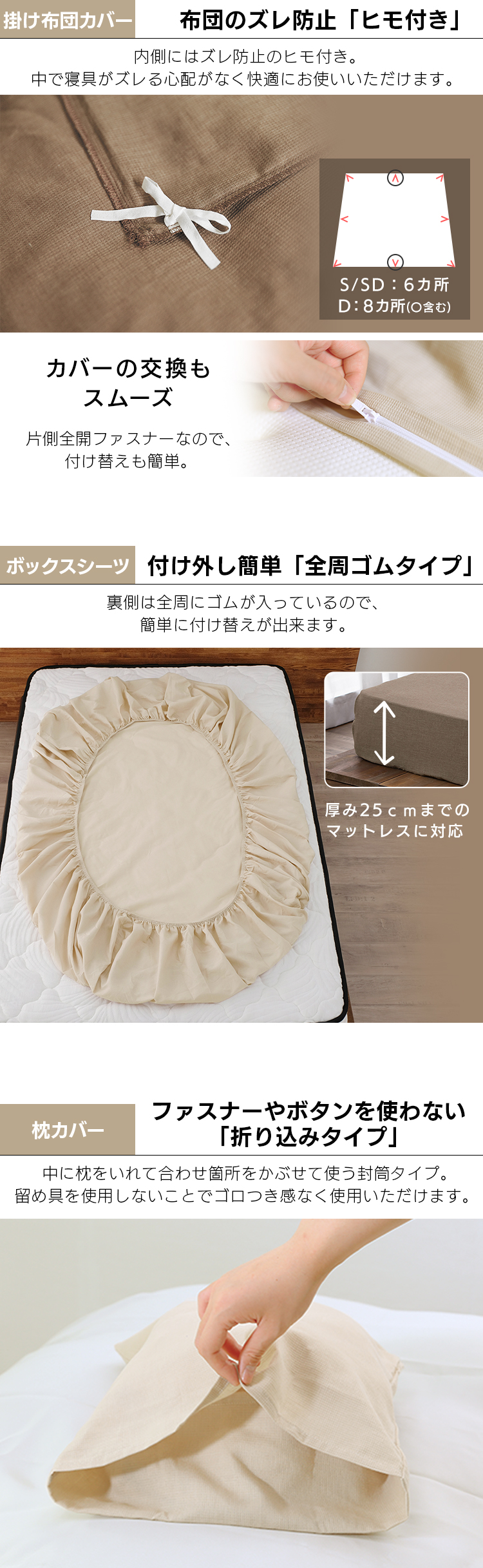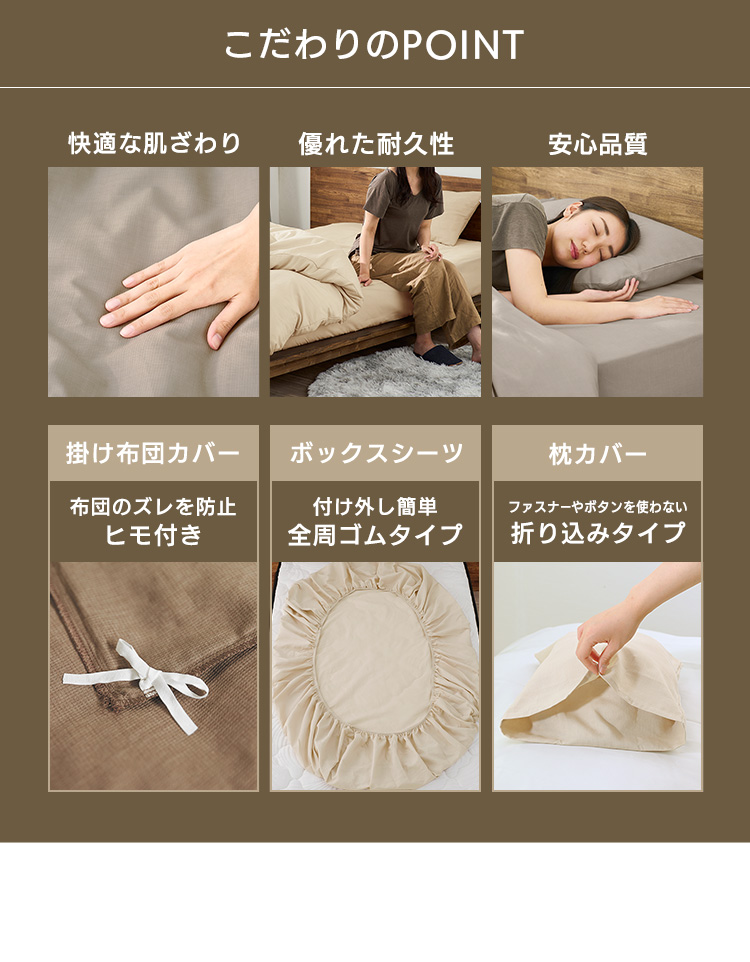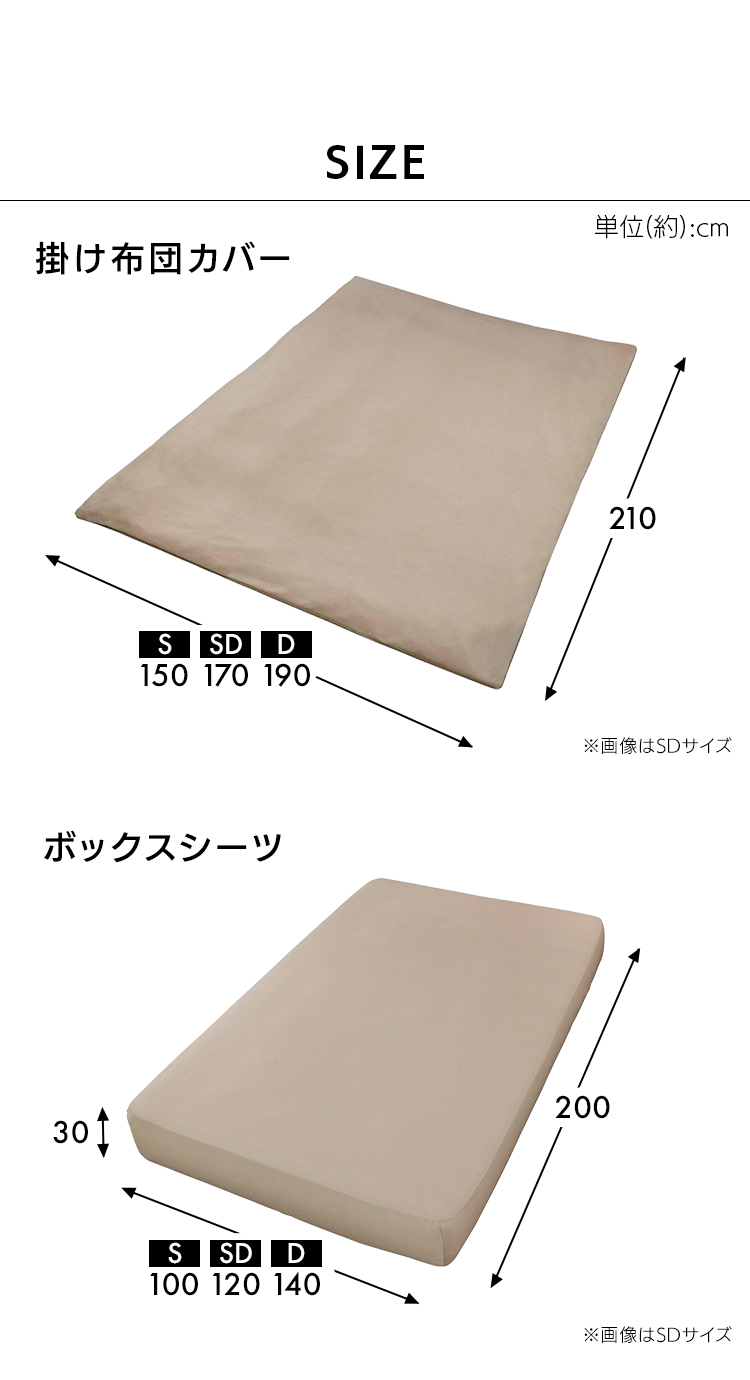掛布団カバー、ボックスシーツ、枕カバー(※35×50または43×63)
