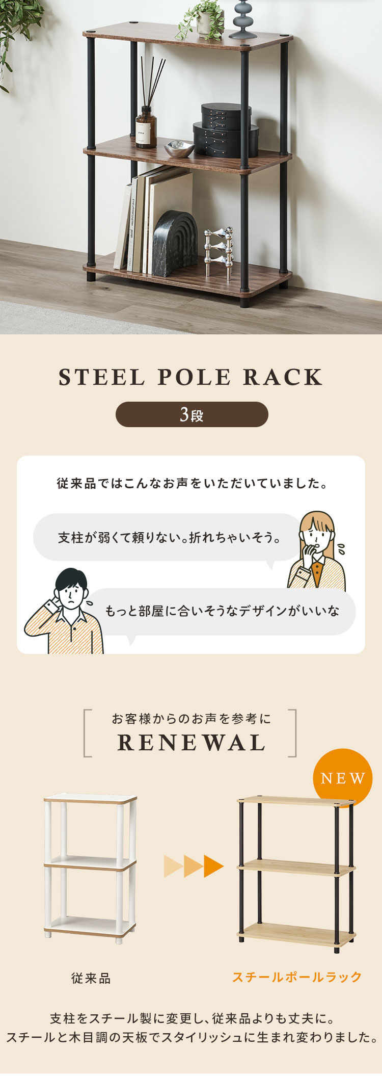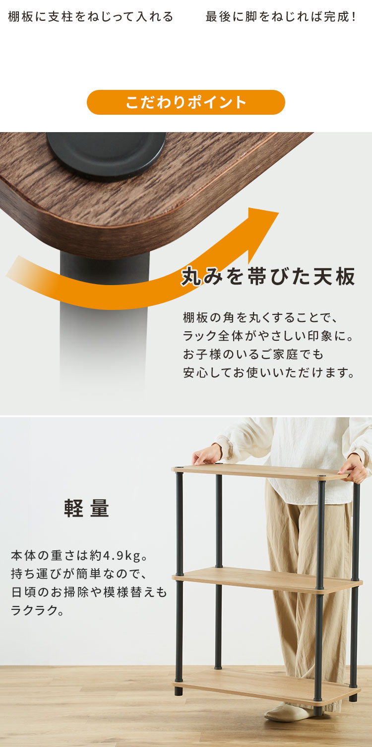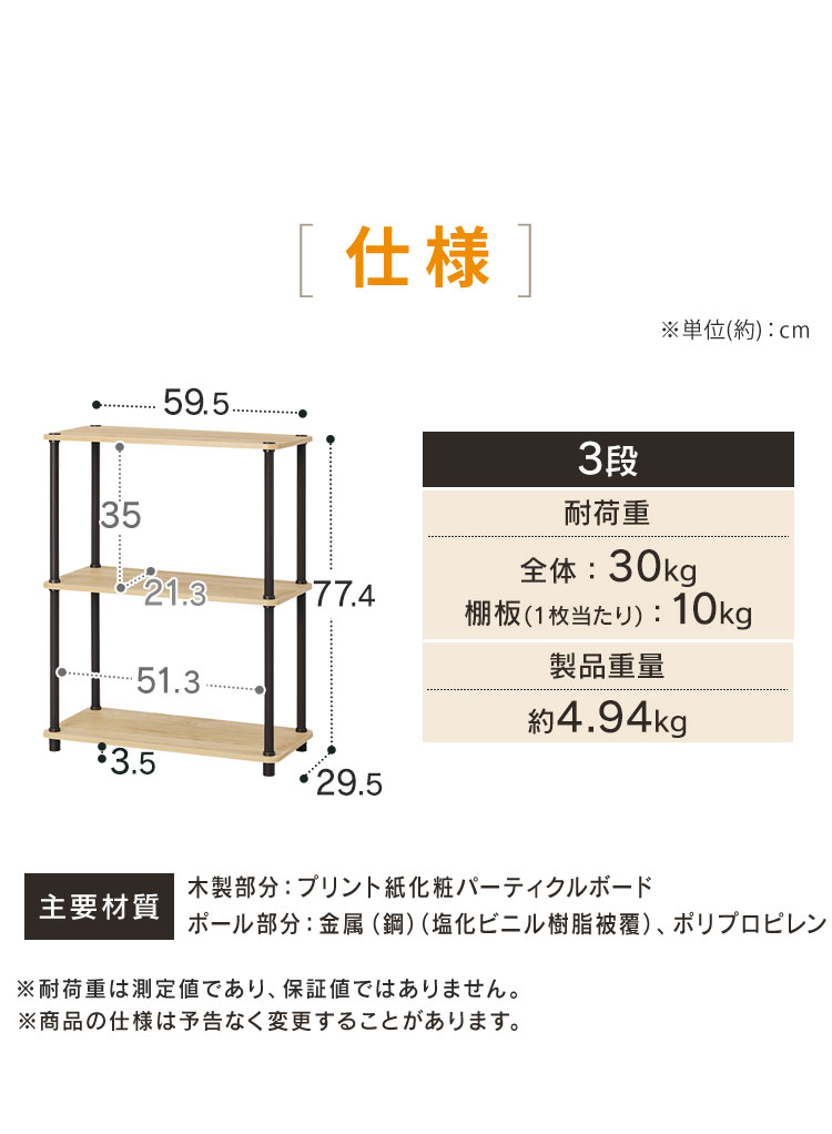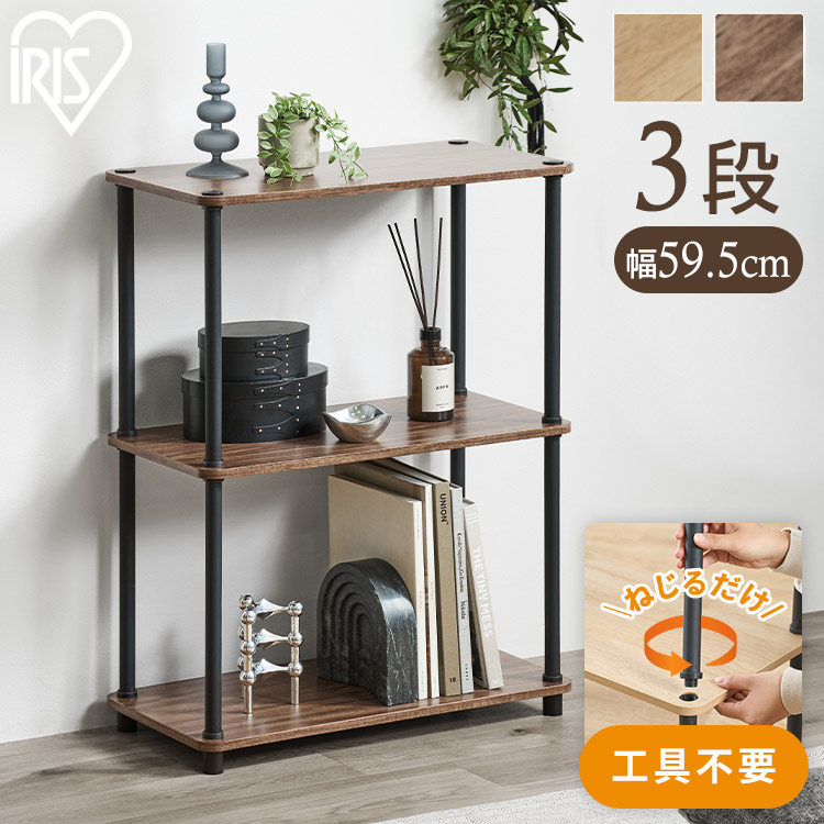 [検索用:ラック 棚 収納 3段 幅59.5 奥行29.5 オープンラック オープンシェルフ 軽量 組み立て簡単 工具不要 本棚 収納棚 シェルフ シェルフ棚 おしゃれ 北欧 ディスプレイラック リビング 幅60 奥行30 スチールポールラック 4967576813204 4967576813211]