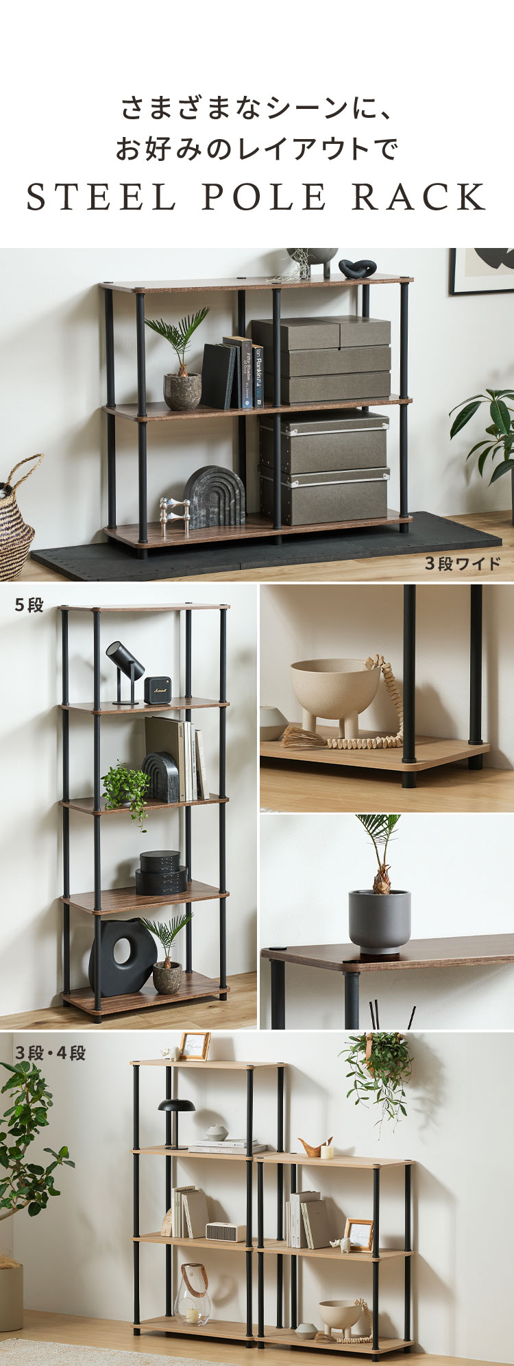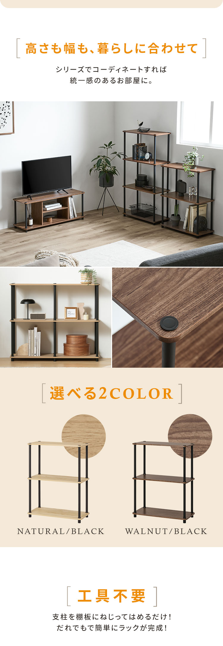 ブラックスチールとあたたかな木目調の木材の組み合わせで、スタイリッシュなお部屋を演出します。