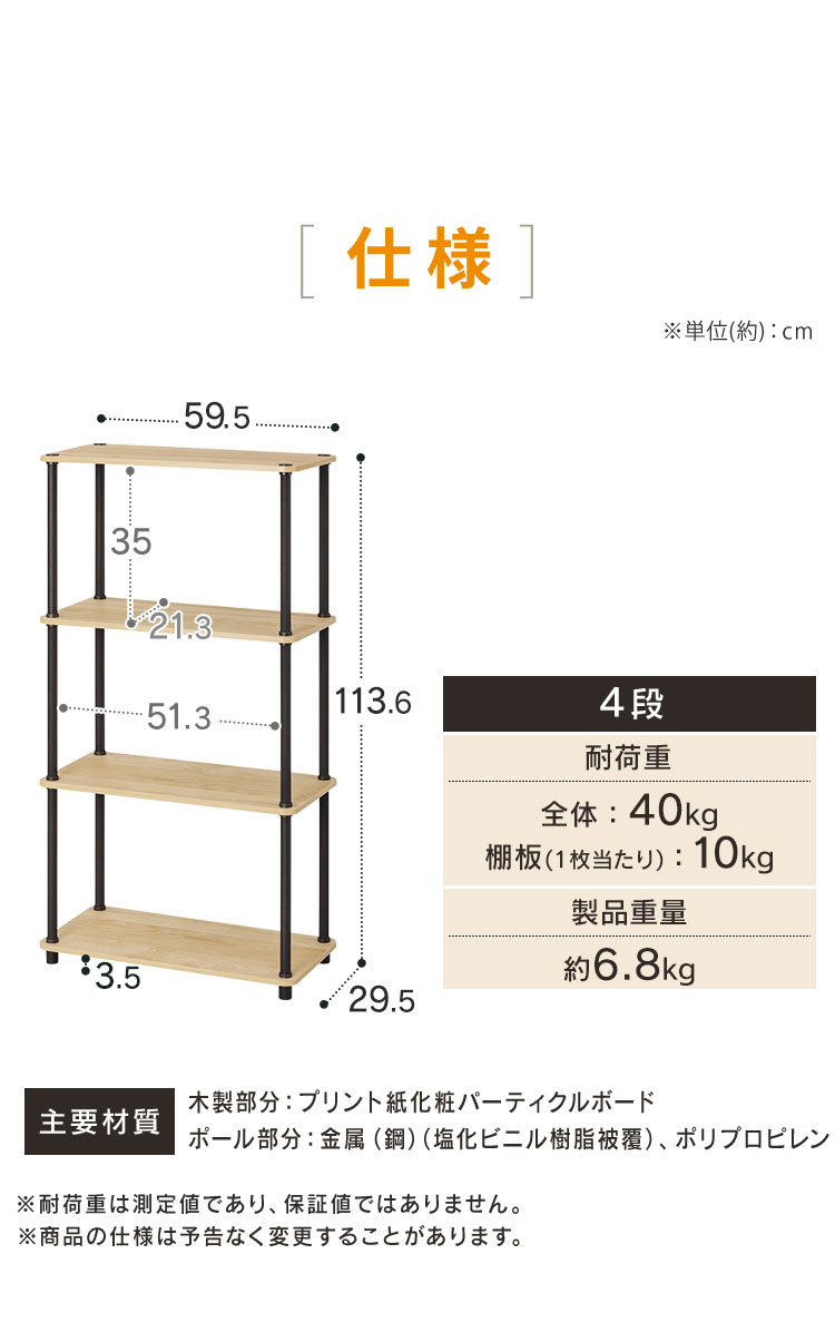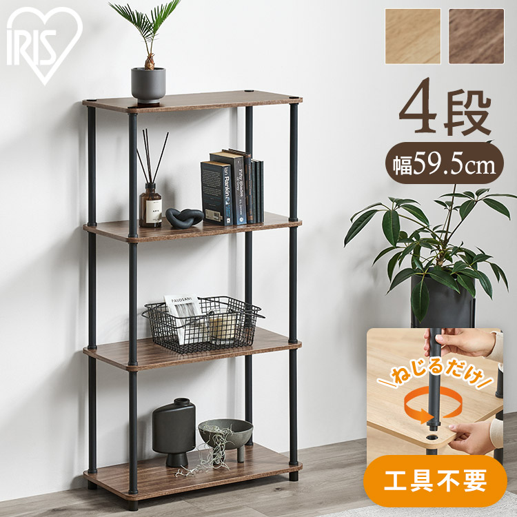 [検索用:ラック 棚 収納 4段 幅59.5 奥行29.5 オープンラック オープンシェルフ 軽量 組み立て簡単 工具不要 本棚 収納棚 シェルフ シェルフ棚 おしゃれ 北欧 ディスプレイラック リビング 幅60 奥行30 スチールポールラック 4967576813228 4967576813235]