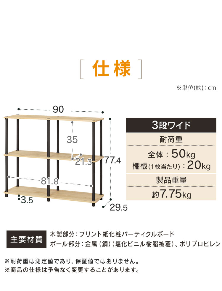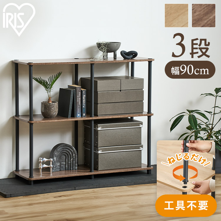 [検索用:ラック 棚 収納 3段 ワイド 幅90 奥行29.5 オープンラック オープンシェルフ 軽量 組み立て簡単 工具不要 本棚 収納棚 シェルフ シェルフ棚 おしゃれ 北欧 ディスプレイラック リビング 奥行30 スチールポールラック 4967576813280 4967576813297]
