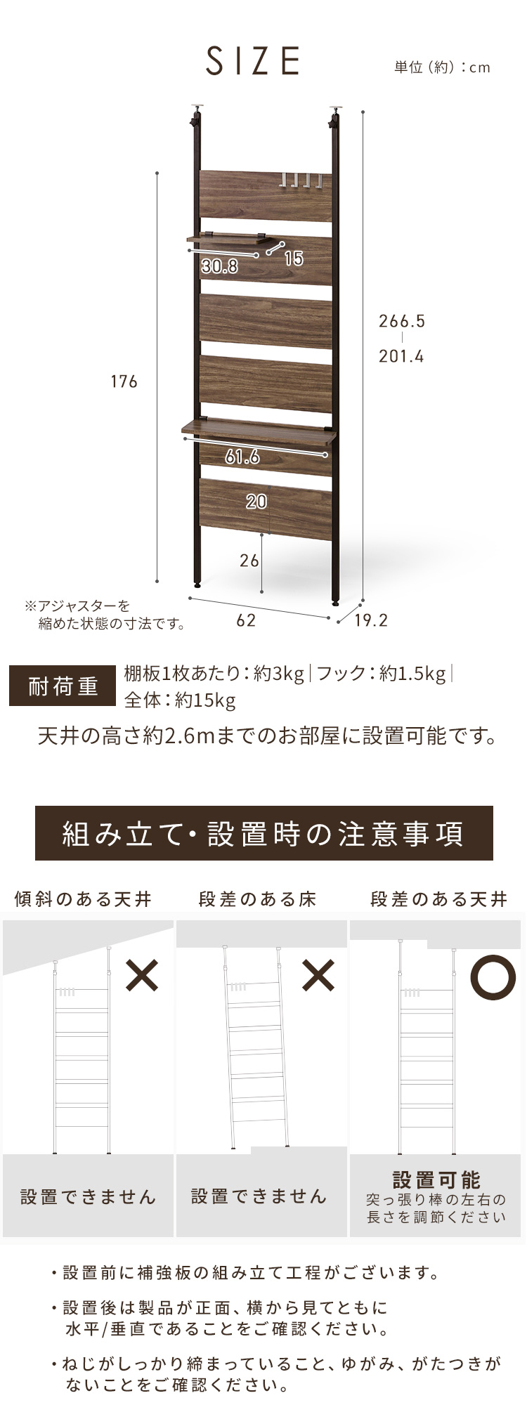 幅約62×奥行約19.2×高さ約201.4〜266.5