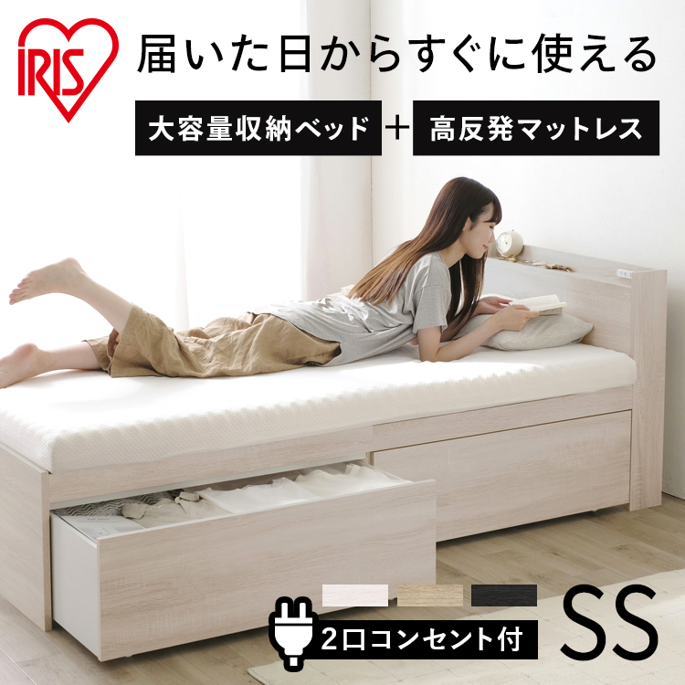 [ベッド 大容量 収納 宮付き すのこ マットレス ヘッドボード 棚 引出 コンパクト 小さめ セミシングル 子供部屋 ワンルーム]
