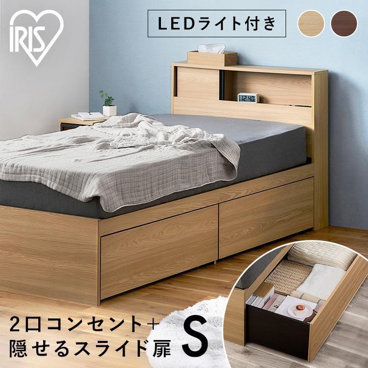 ベッド シングル ベッドフレーム 収納 大容量 収納付きベッド コンセント付き アイリスオーヤマ LDK SDB-S 引き出し チェストベッド LEDライト 木目調 *