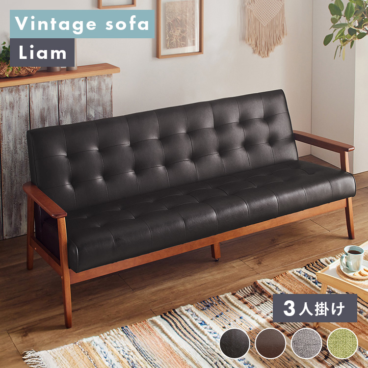 ソファー 3人掛け レザー調 レトロ ヴィンテージ風 おしゃれ ファブリック 肘掛け 天然木フレーム 程よい弾力 ソファ 三人用ソファー 新生活 *