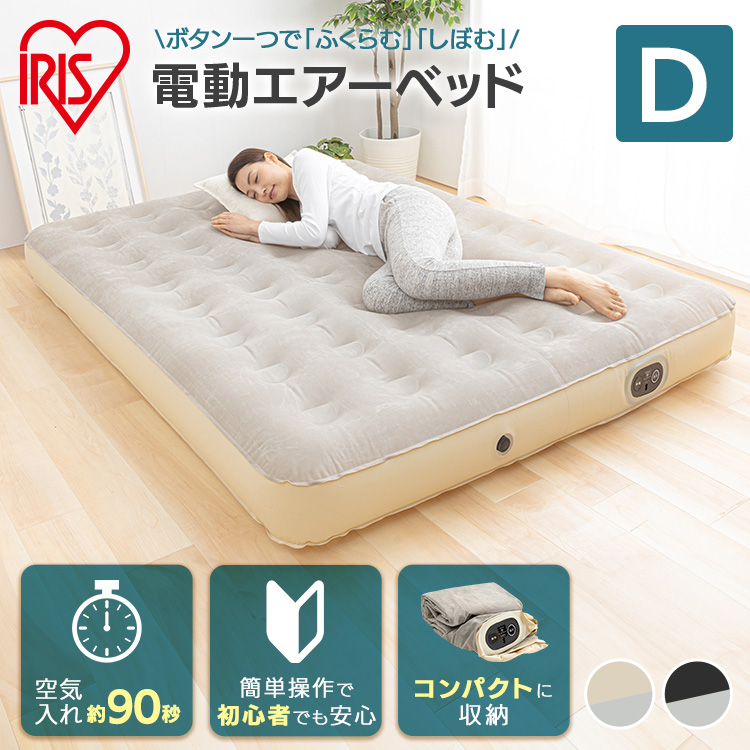 エアーベッド 電動 ダブル エアーベッド ボタン一つ簡単操作 収納バッグ付き エアーマット 来客用 エアマット 簡易 ふかふか PEAB-250D アイリスオーヤマ