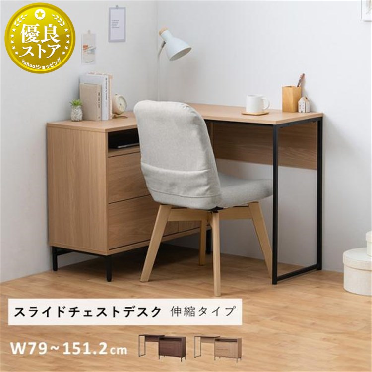 普段はコンパクトなチェストとして、天板をスライドさせれば最大幅151.2cmのデスクとして、使いたいときに自由に設定。