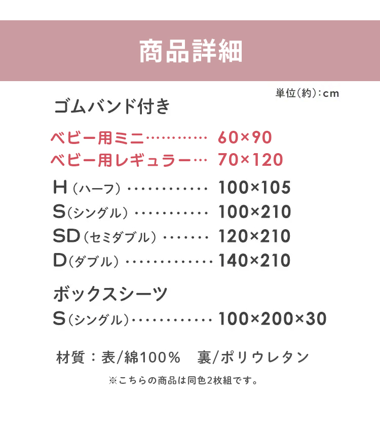 四隅ゴム付きでベビー敷きふとんに装着できます