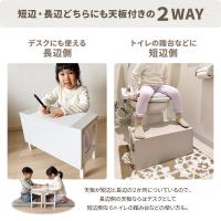 天板が短辺と長辺の2か所についているので、長辺側の天板ならはデスクとしてご使用いただき、短辺側ならトイレの踏み台などの使い方もできて便利で機能的。