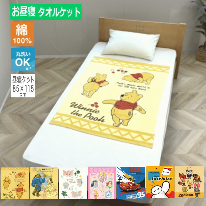 | ディズニー お昼寝ケット綿100%(85×115cm) くまのプー/美女と野獣/ダンボ/プリンセス/カーズ/ベイマックス/ズートピア (I-D51-85) |