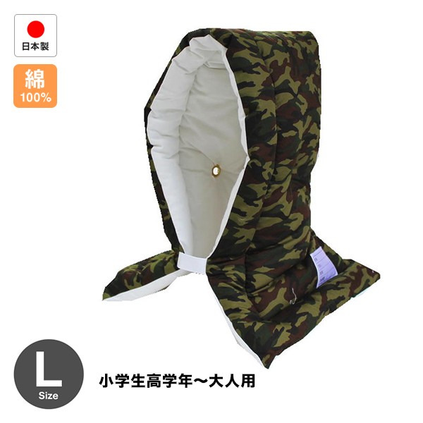 防災ずきん日本製(小学生から大人まで)Lサイズ 防災クッション(約30×46cm)迷彩柄グリーン