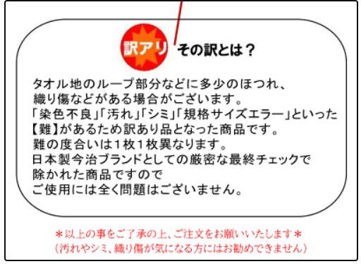 織りキズや染色ミス、汚れ、縫製仕上げ不良などでB規格になった商品です。