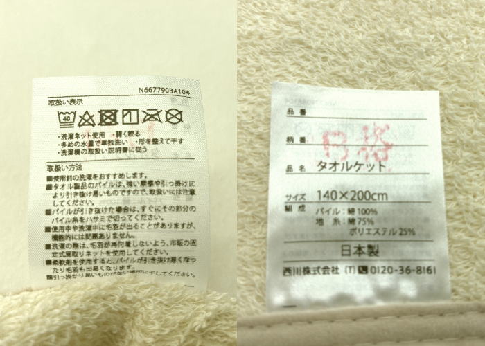 西川 日本製 訳あり アウトレット タオルケット ベージュ/グリーン(AK-202504)