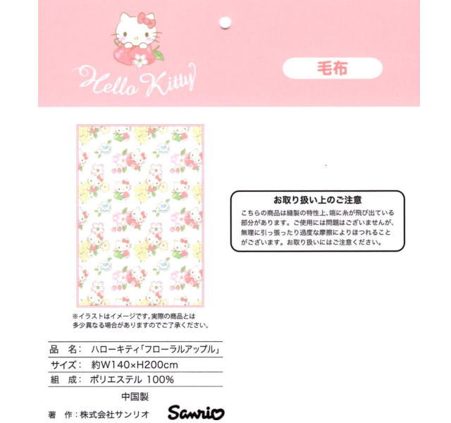 ハローキティ あったか毛布(シングルサイズ)「フローラルアップル」 |