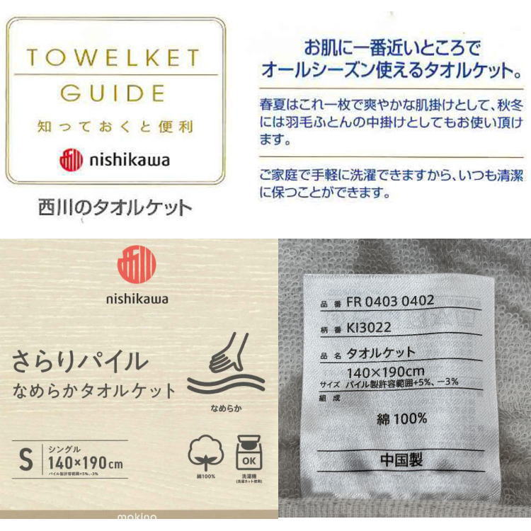 西川 綿100% なめらかタオルケット シングルサイズ