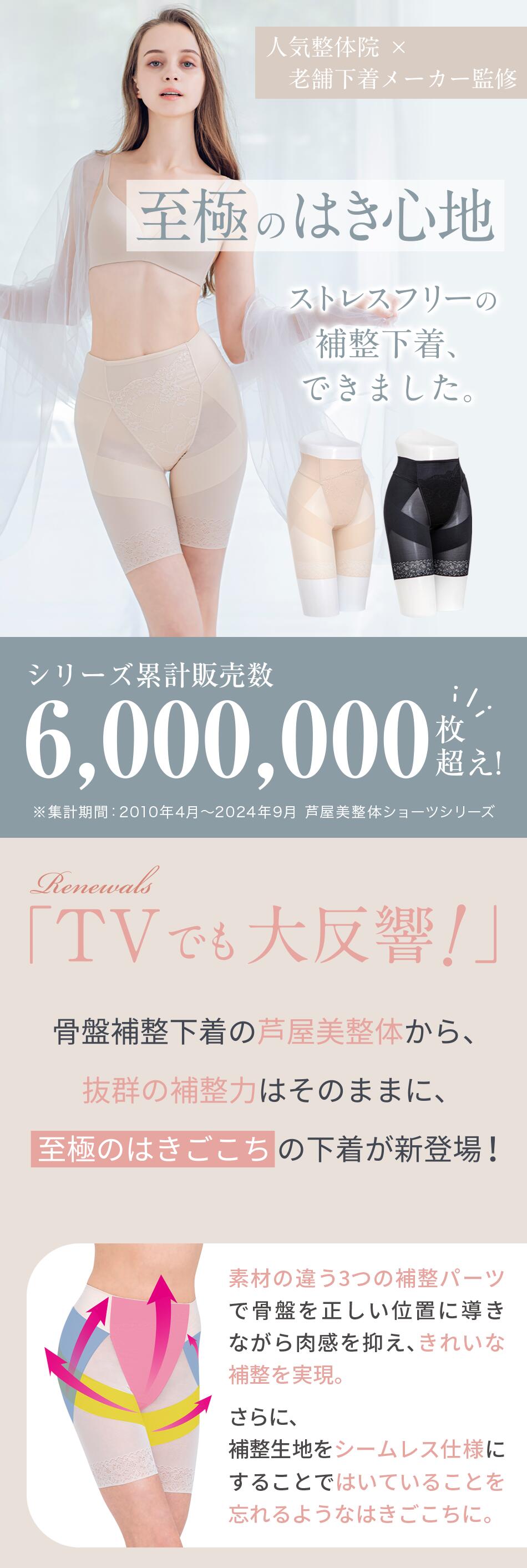 至極のはき心地、ストレスフリーの補整下着、できました。シリーズ累計販売数6,000,000枚超え。※集計期間2010年4月〜2024年9月芦屋美整体ショーツシリーズ。