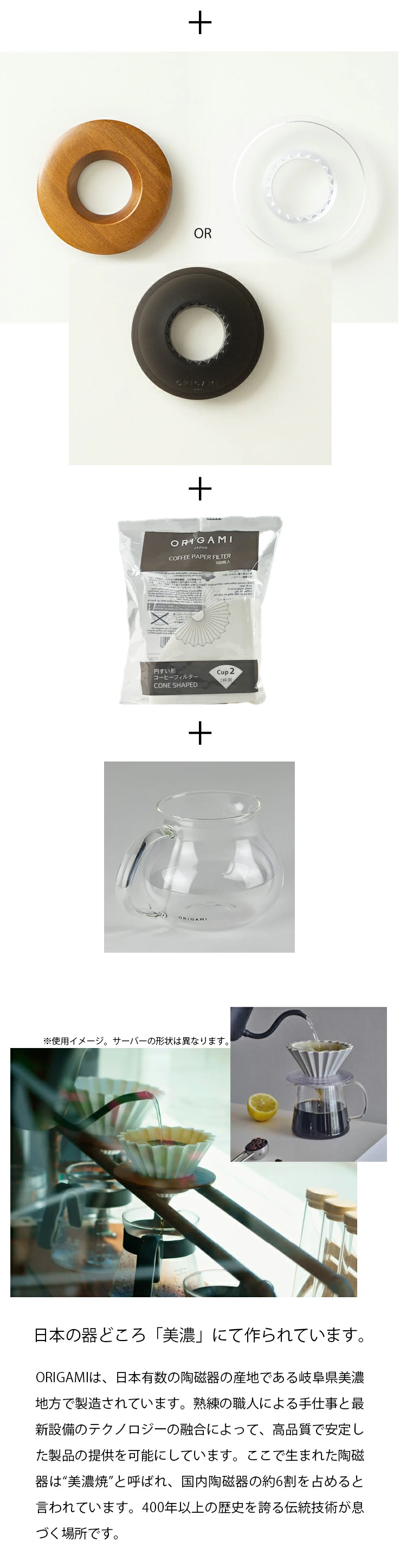 岐阜県東濃地域は、豊かな自然に恵まれ、良質な土と腕のいい陶工が集まる陶磁器生産の一大拠点です。ここで生まれた陶磁器は“美濃焼”と呼ばれ、国内陶磁器の約6割を占めると言われています。400年以上の歴史を誇る伝統技術が息づくこの場所でORIGAMIは生まれ、国内外のコーヒーを愛する人たちに届けられます。