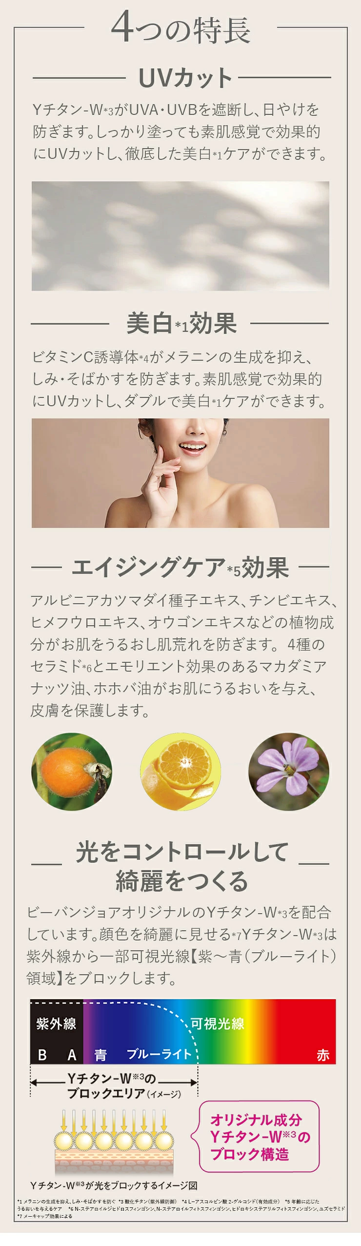 ・しっかり塗っても素肌感覚で効果的にUVカットし、徹底した美白*1ケアができます。