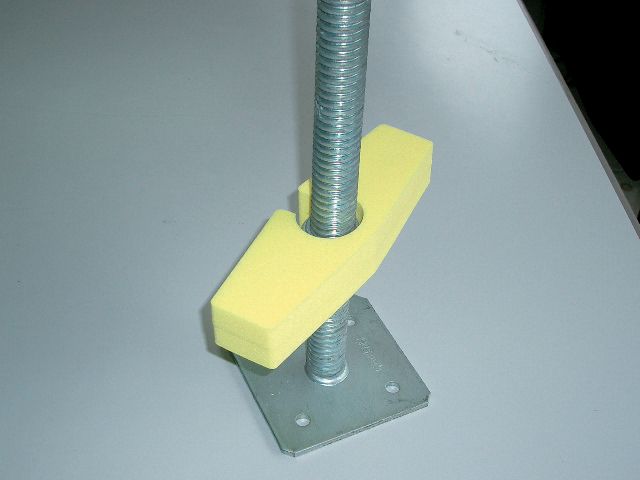 ジャッキベース用ハンドルの養生。作業時や通行人の安全を守る。